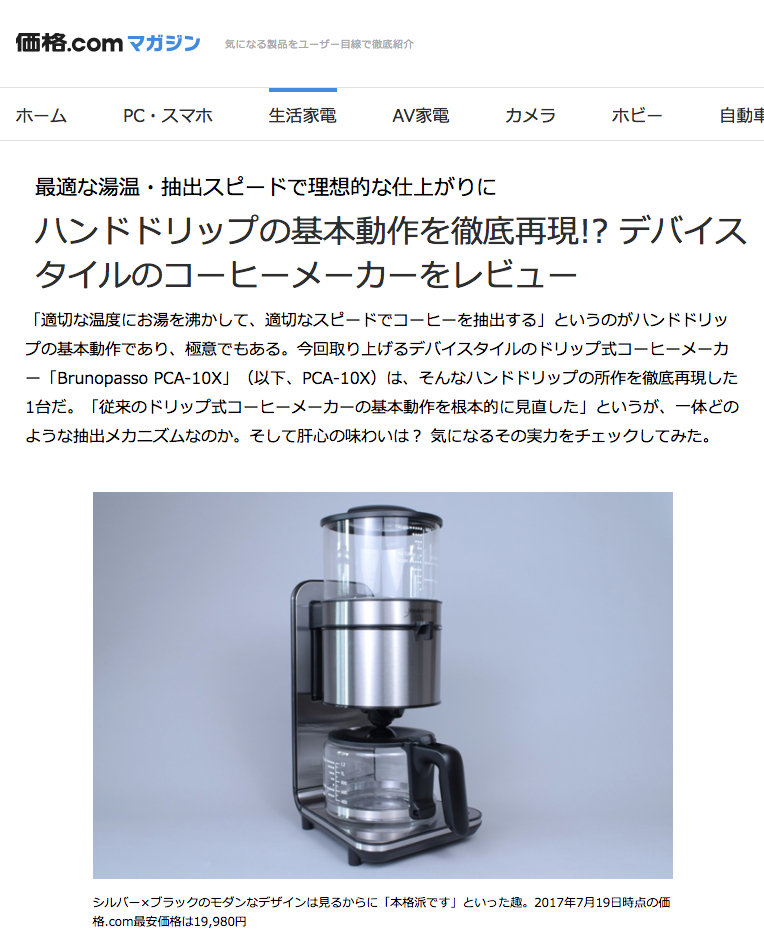 PCA-10X(コーヒーメーカー)価格.COMマガジンにて取り上げて頂きました。