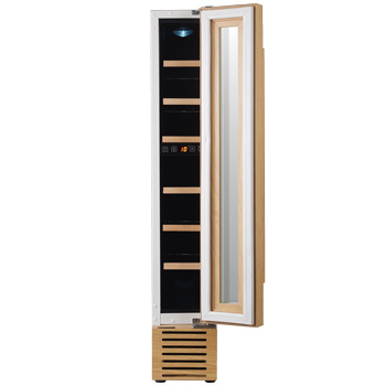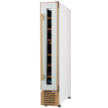 『Angelshare CE-C7W-W』は、キッチンなどへのビルトインが可能な前面吸排気構造を採用したコンプレッサー式のスリムタワー型7本収納用ワインセラーです。