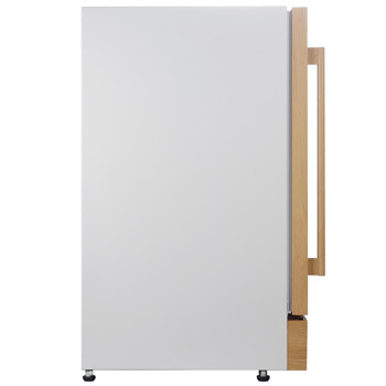 ワインセラーには珍しいホワイトボディーを採用し、ハンドルやドアなどに木目をあしらうなど明るいキッチンや和室などにもフィットするインテリア性を重視した外観仕様となっています。