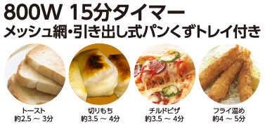 | フライ温め | 約4〜5分 | ※油が飛び散らないよう、付属の受け皿にアルミホイルを敷いてください。 |