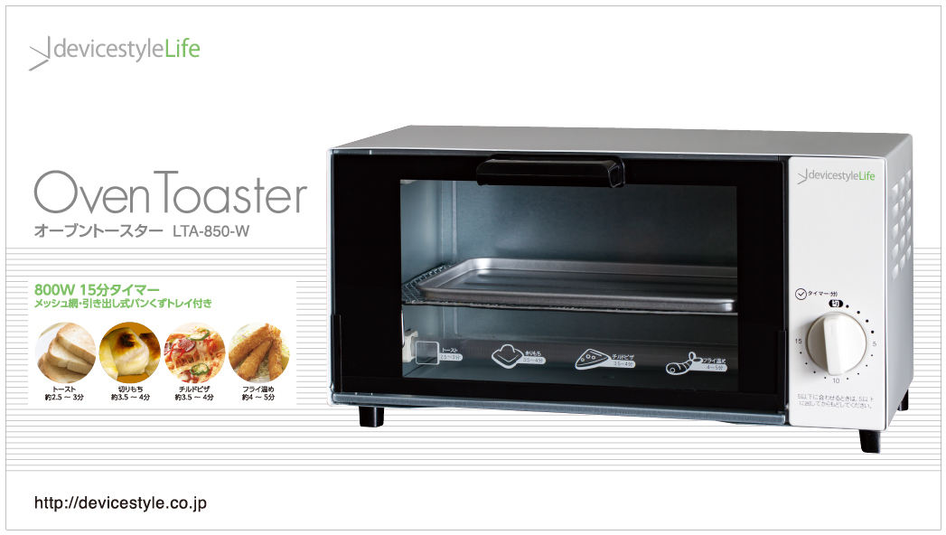 | トースト8枚切り2枚 | 約2.5〜3分 | ※本製品の構造上、パンの上面と下面は同じ焼け具合になりません。 |