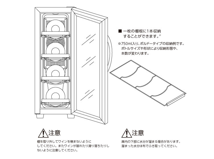 付属品/ワイン棚4枚、水受けトレー、取扱説明書