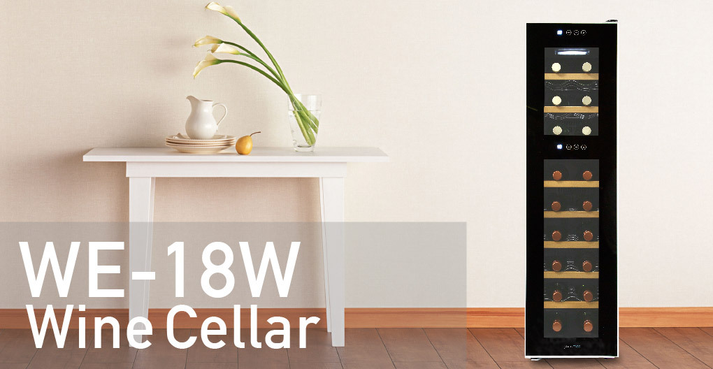 WE-18Wは完全に独立した二つの庫内を持つワインセラーです。 加温機能を持った上部庫内には6本収納可能。外気温の変化に応じて、冷却・加温を行い、最適な温度環境でワインを熟成させます※1。