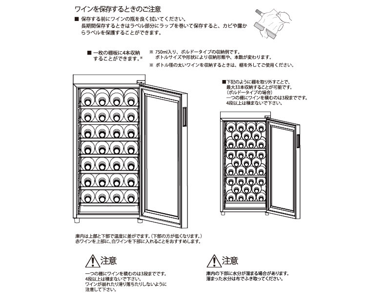 ● ワインボトルが、がたつきがないように正しく収納されていますか?