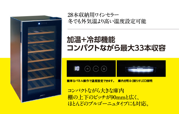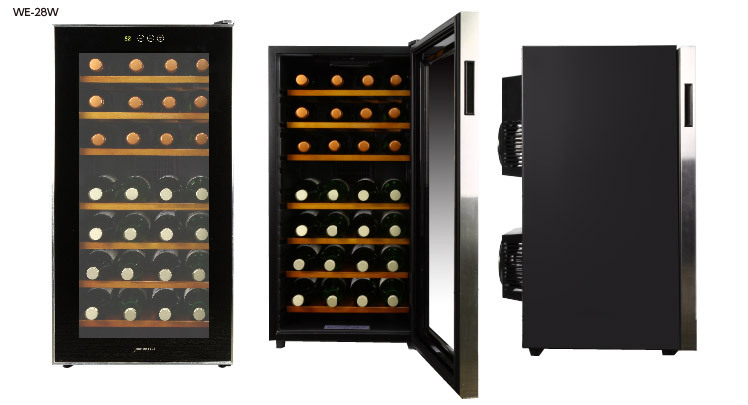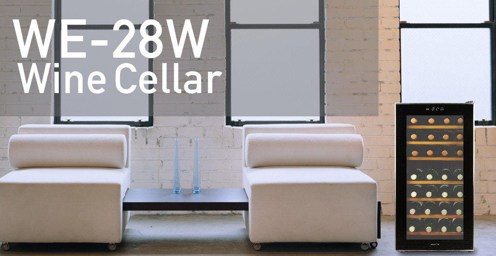 更なる収納本数を望む需要に対応し、新たにより性能を充実させた28本用加温機能付ワインセラー『WE-28W』